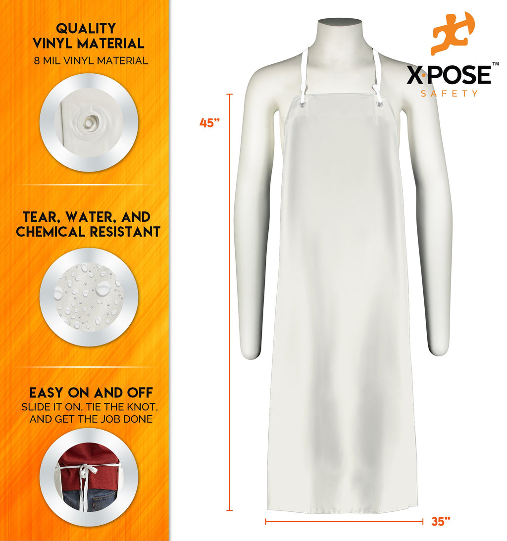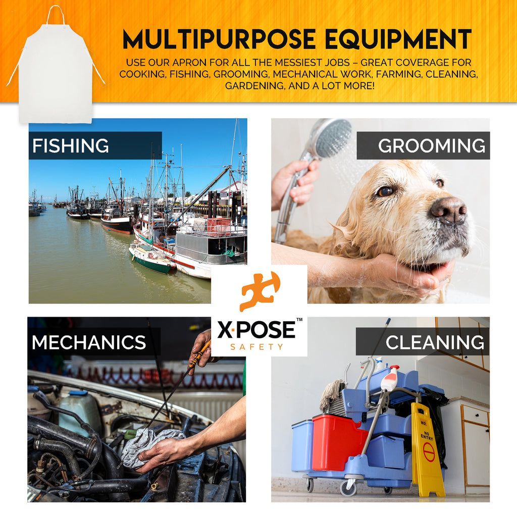 When it comes to tough jobs, you need more than just an apron—you need Xpose Safety’s Heavy Duty Waterproof Aprons. Made from strong 8 Mil vinyl, these aprons provide superior protection for your clothes and skin against spills, splashes, chemicals, and more. Whether you're cooking, cleaning, fishing, gardening, or working in an industrial setting, these aprons offer the durability and convenience you need to stay clean and safe.