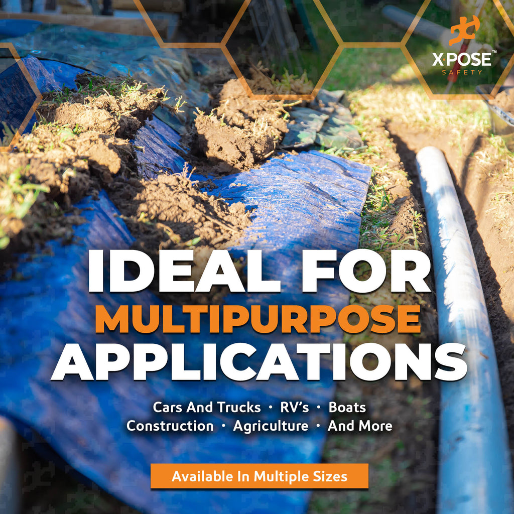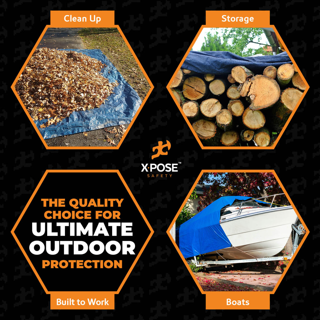 Keep everything you own safe with Xpose Safety! Our Heavy Blue/Brown Tarp will be a much needed addition to your home or business for all sorts of safety and general protection necessities. With our tarps you will rest easy knowing your equipment and belongings are safeguarded from inclement weather and other hazards that can damage your precious items.
