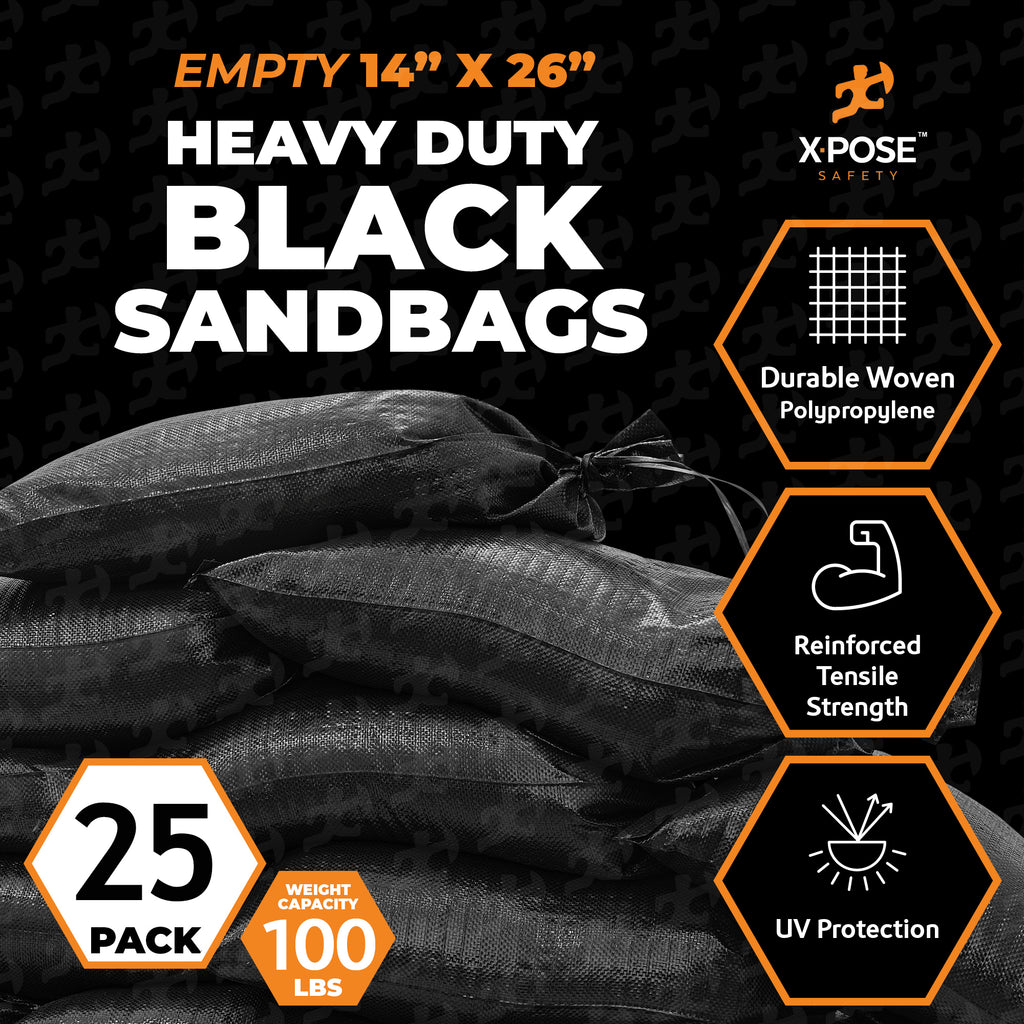 H/D Woven Polypropylene Empty Sand Bags / 14" X 26" / Black / 10